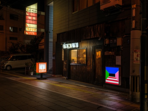 別府の夜の町を散策しながらアート作品を巡るナイトツアー。