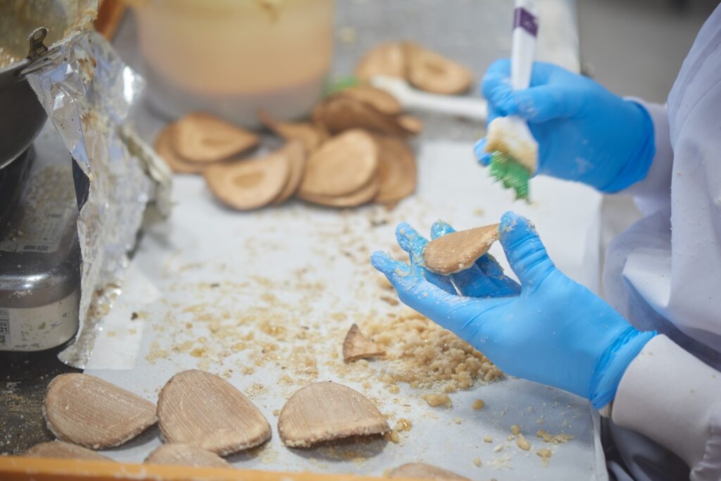 臼杵を訪れたら、まず手に取りたいのは、やはり臼杵煎餅です。江戸時代後期から続く素朴な味わいは、いまも一枚一枚、刷毛で生姜蜜を塗って木目を描くようにつくられています。噛むほどにふわっと生姜の香りが立ち、甘さも辛さも主張しすぎない、臼杵らしいやさしい味です。
