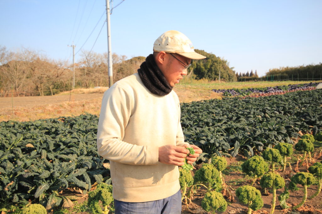 槌本農園では多品種少量生産の方式を取っており、3haの土地で年間約80種類もの野菜を育てています。この営農スタイルは多品目を出荷できるだけでなく、天候や害虫の発生などのリスクを分散できるというメリットがあります。