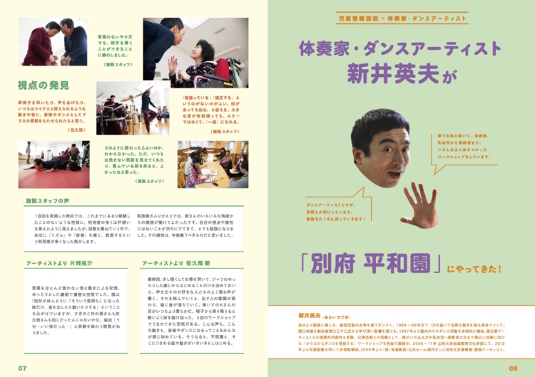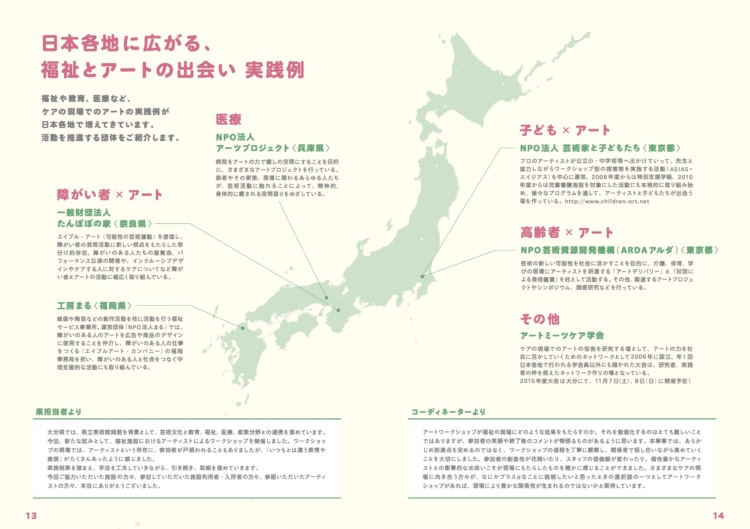 「ART MEETS WELFARE 福祉とアートの出会い」発行発行NPO法人 BEPPU PROJECT事業名平成26年度 大分県 みんなの芸術文化体験事業助成平成26年度 文化庁 地域発・文化芸術創造発信イニシアチブ
